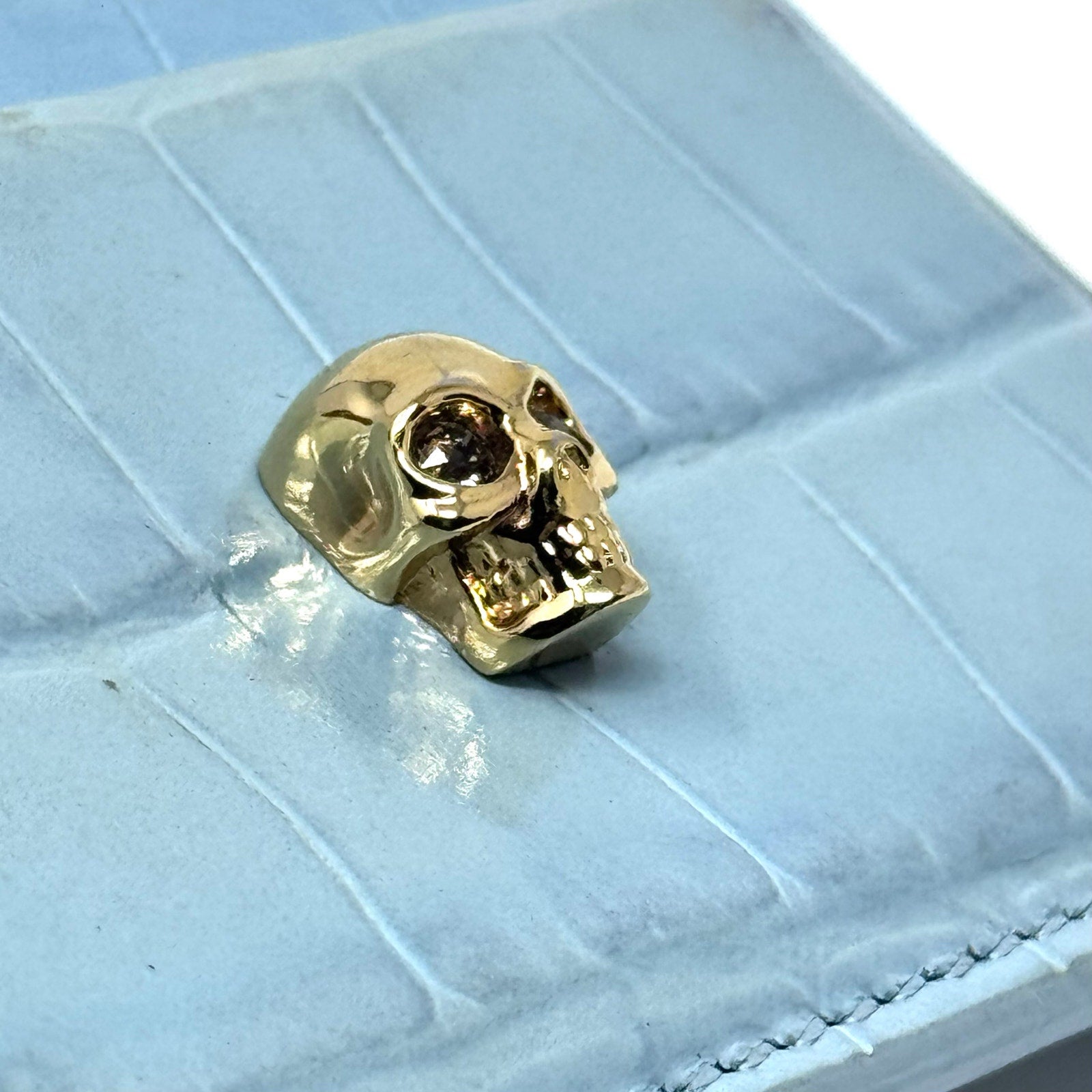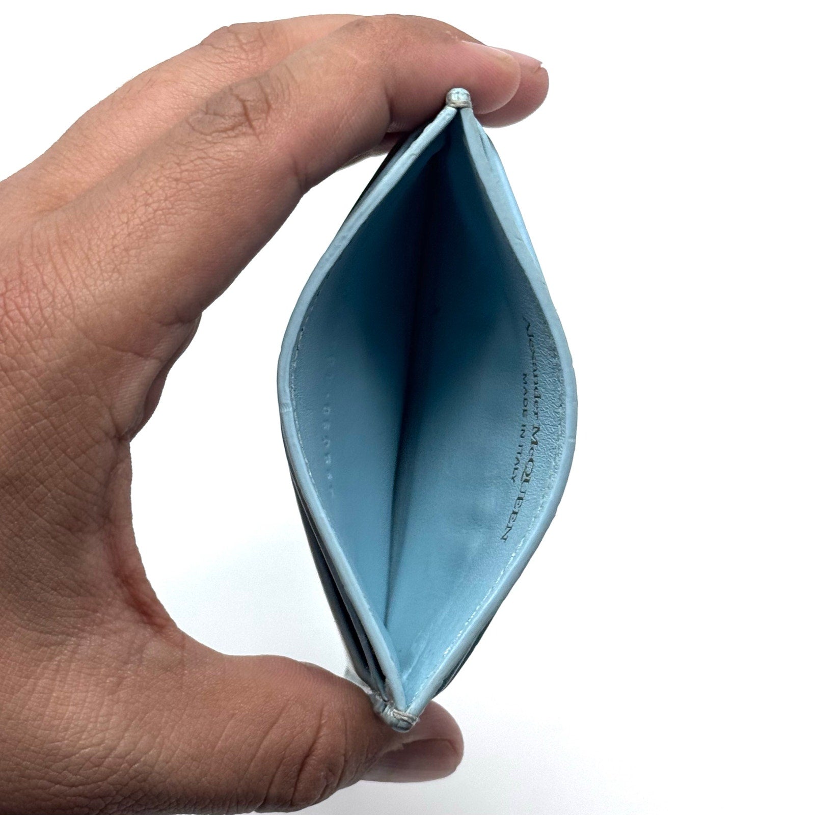 Beautiful Sky Blue Cardholder finished in embossed Leather with Skull on the front. RARE DESIGN!