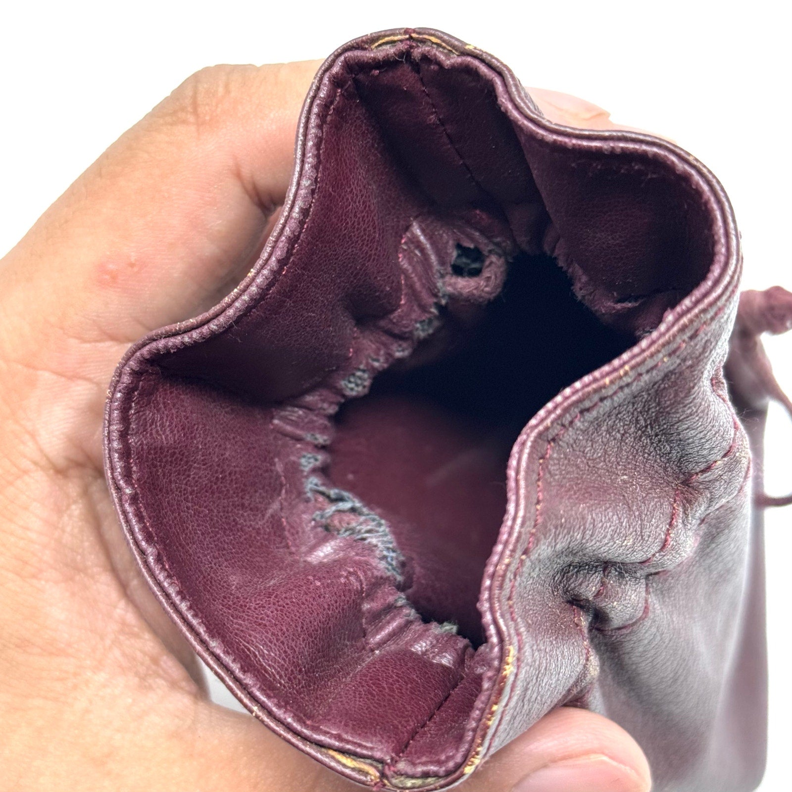 Beautiful Wine Red Leather Pouch finished with classic logo embossed across the front. VERY RARE!