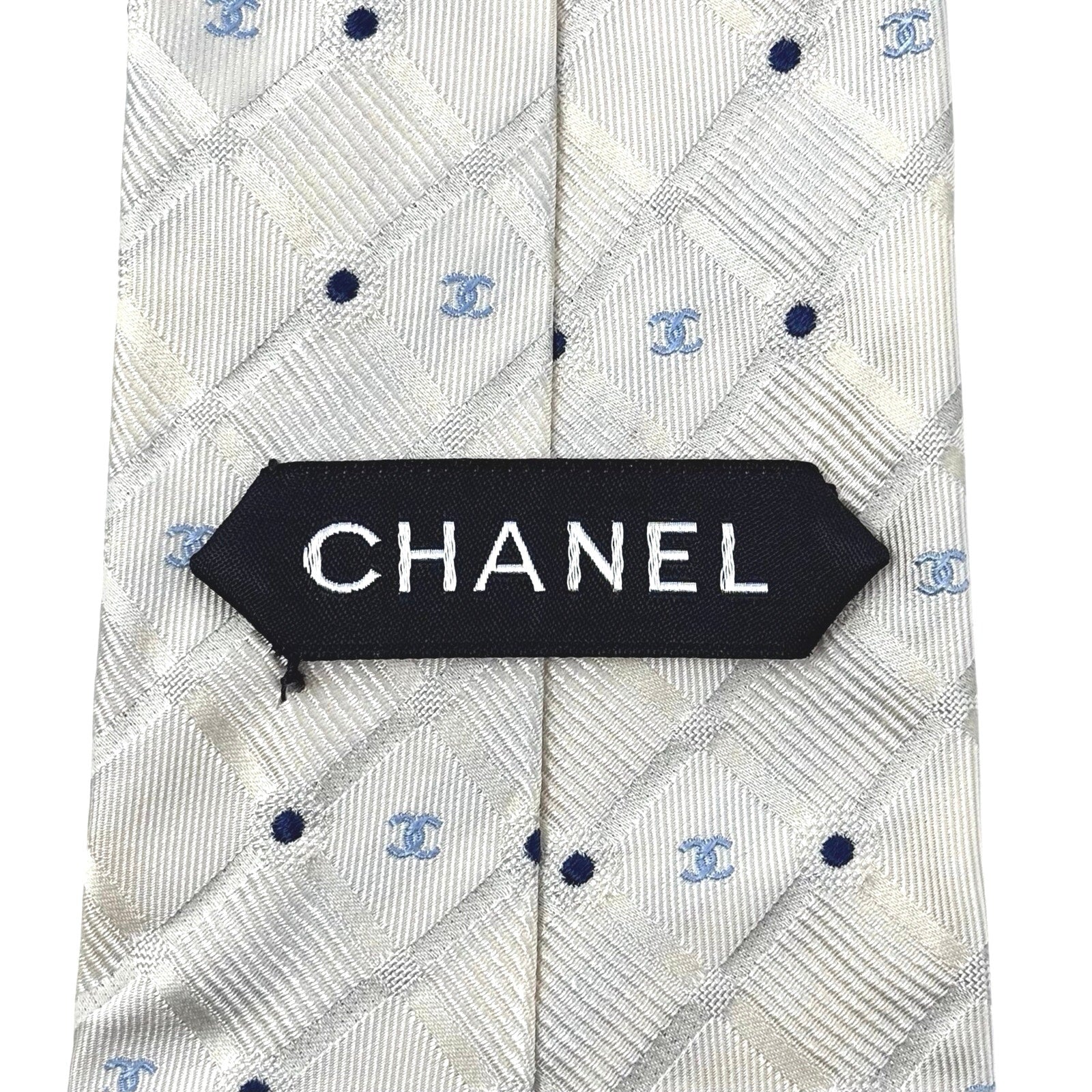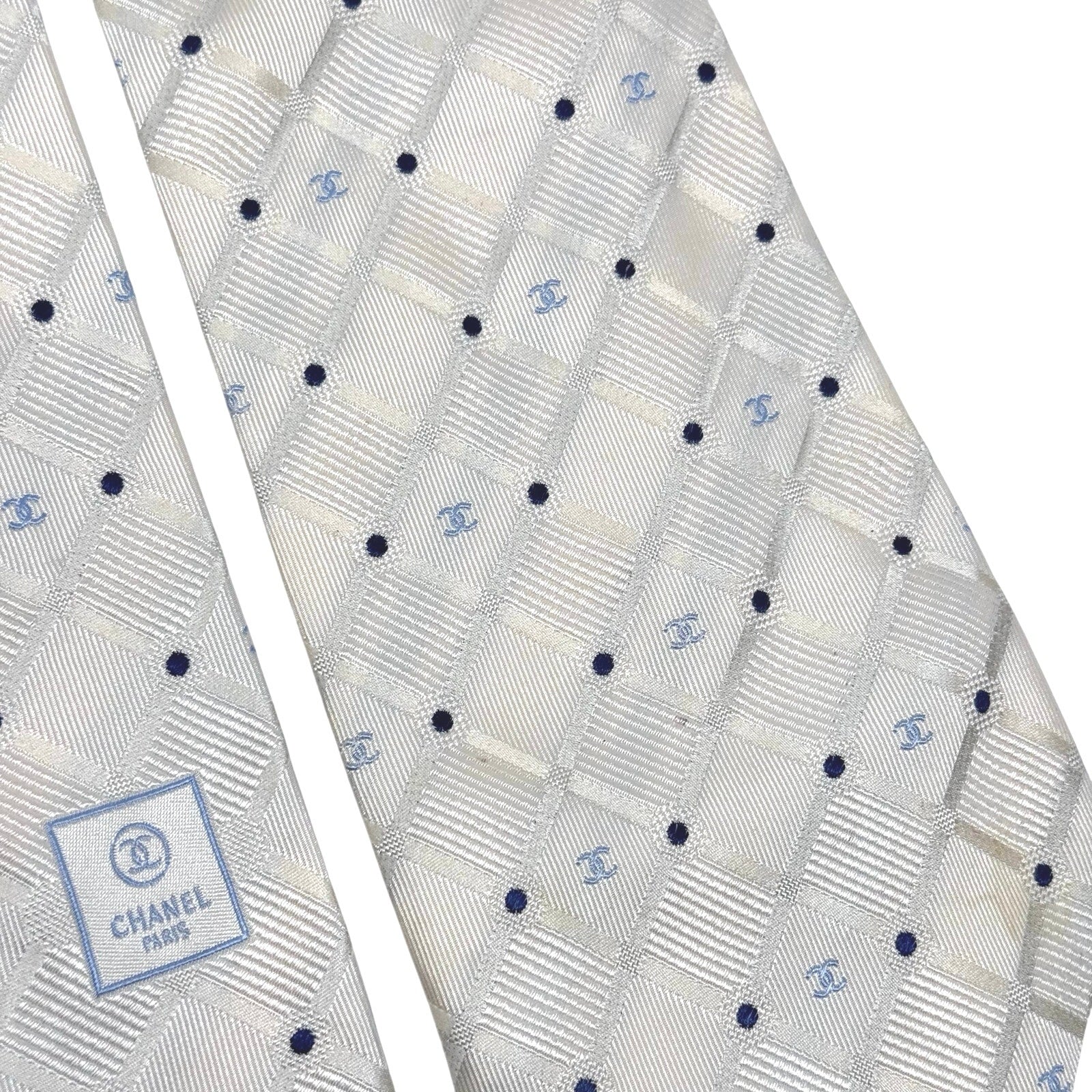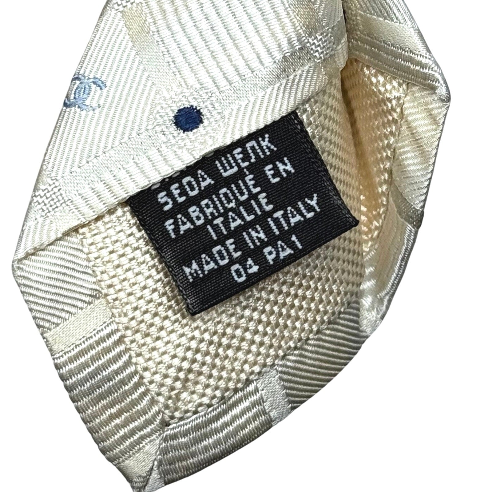 Beautiful Vintage Beige 100% Italian Silk Necktie with Rare CC Pattern through out.