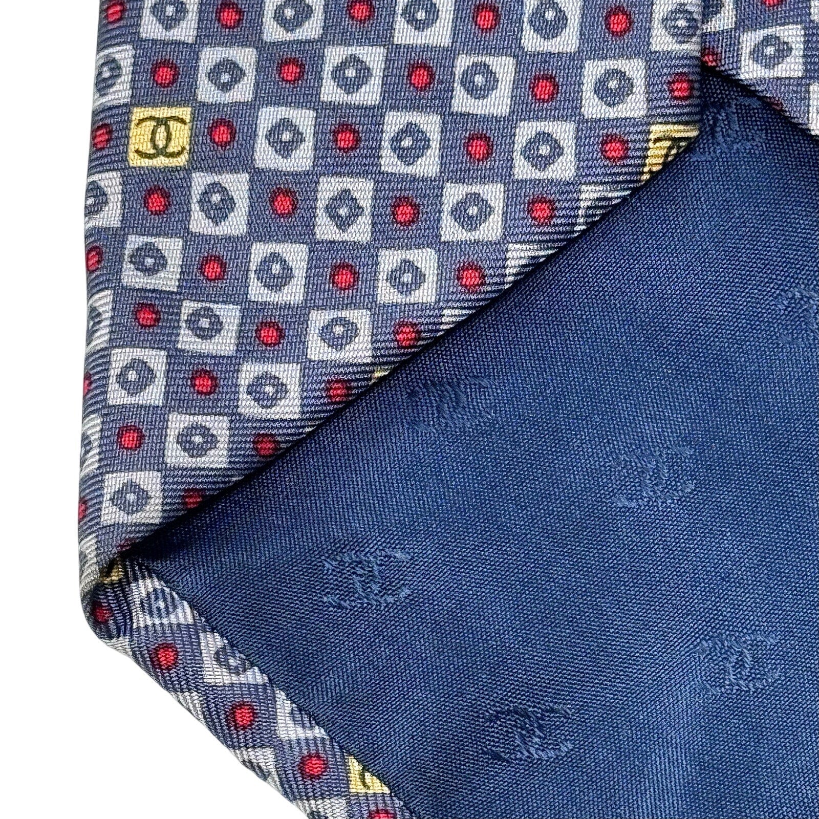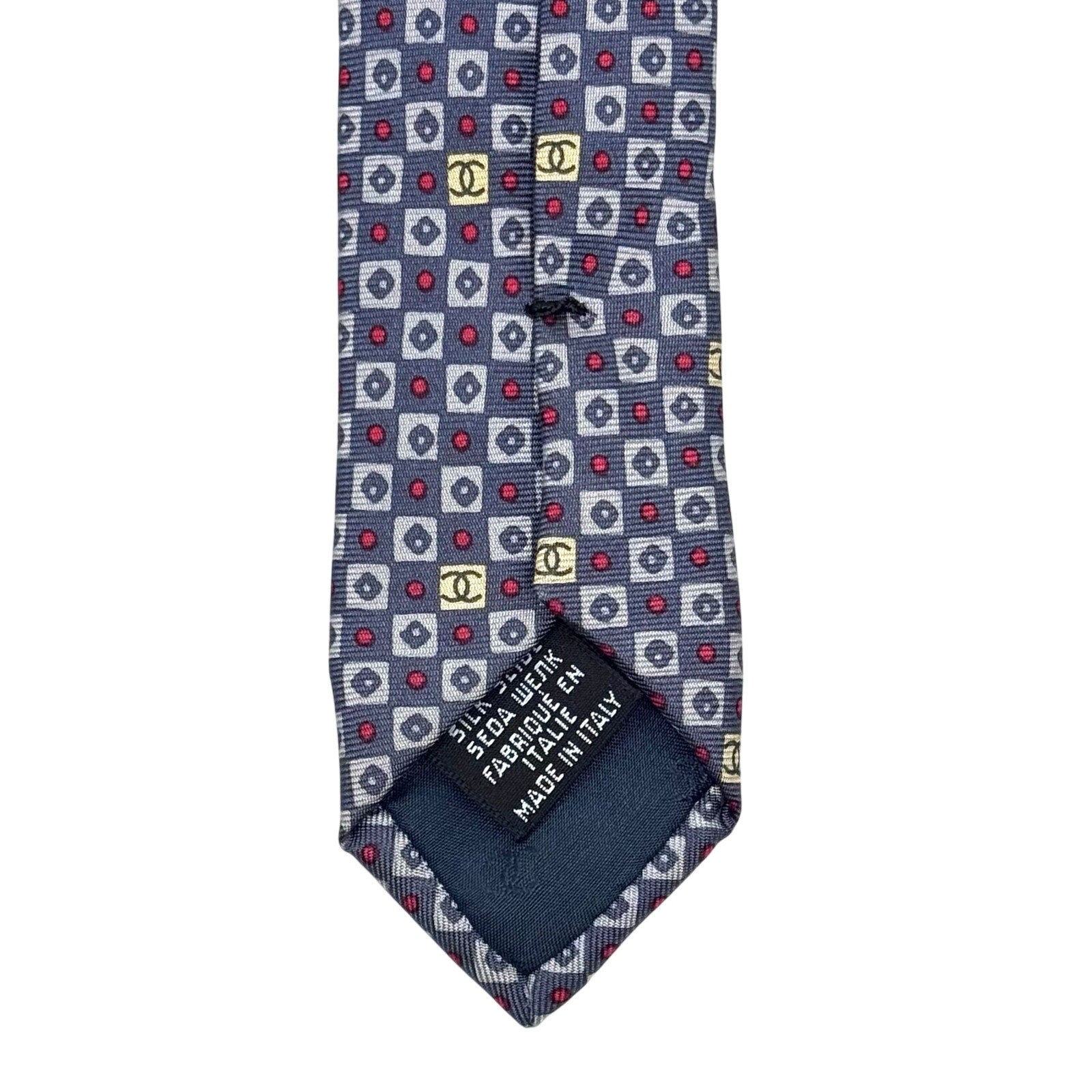 Beautiful Grey-Blue 100% Italian Silk Necktie with Rare CC Pattern through out!
