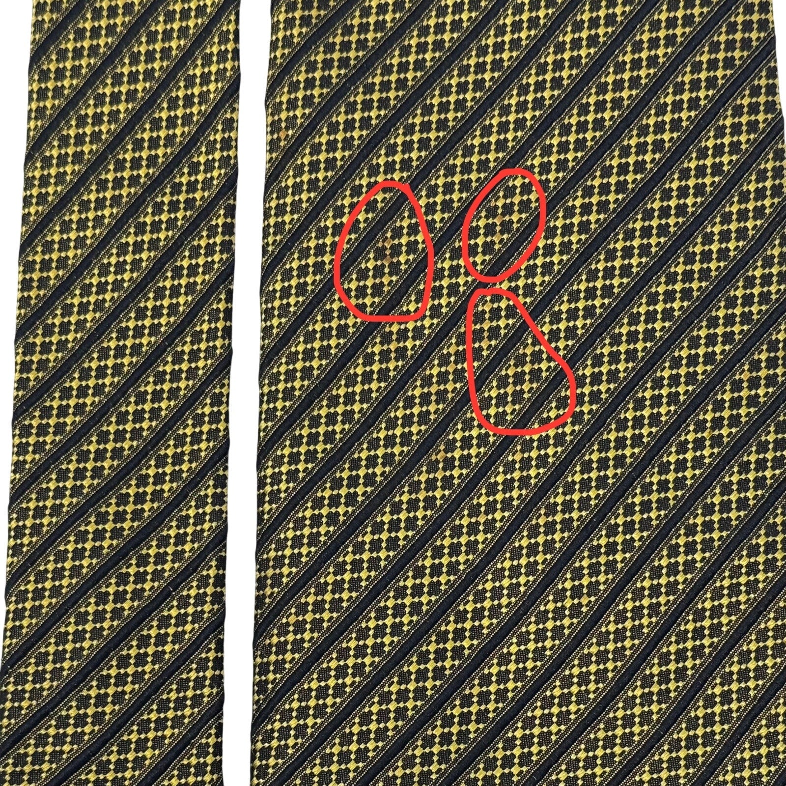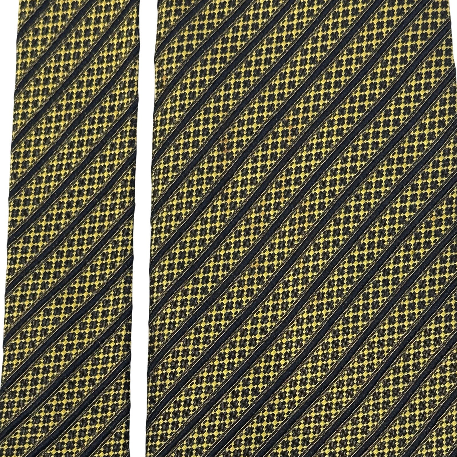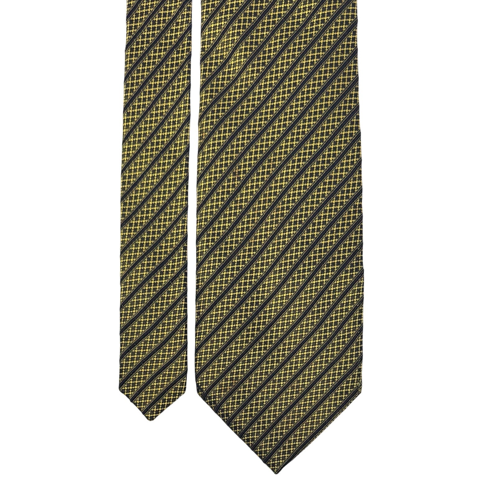 Beautiful Vintage Yellow / Black 100% Silk Necktie with Striped Pattern through out.