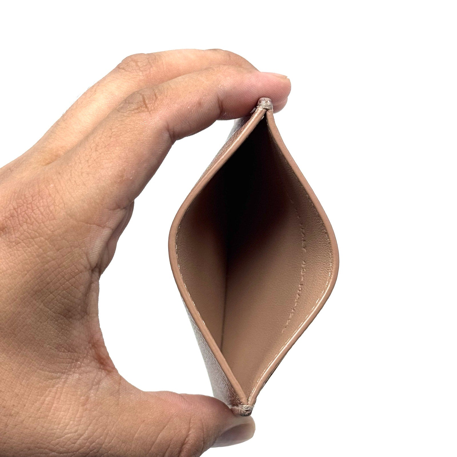 Beautiful Brown Leather Cardholder Wallet with logo in gold-tone metal across the front.