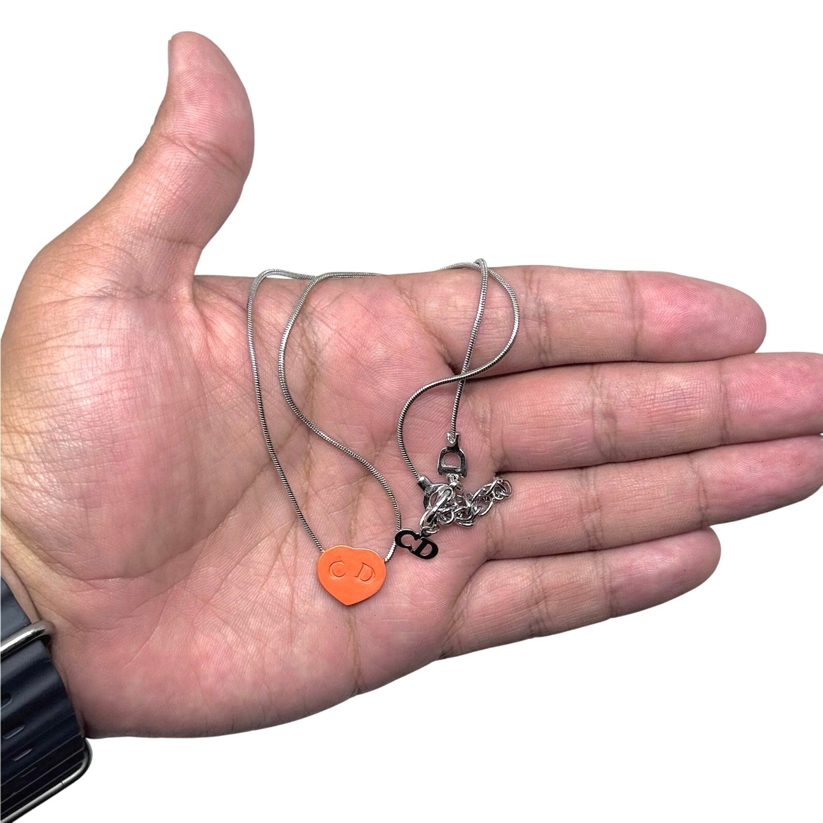 Beautiful choker necklace with a gorgeous Heart-Shaped enamel pendant finished in a vibrant orange color way.