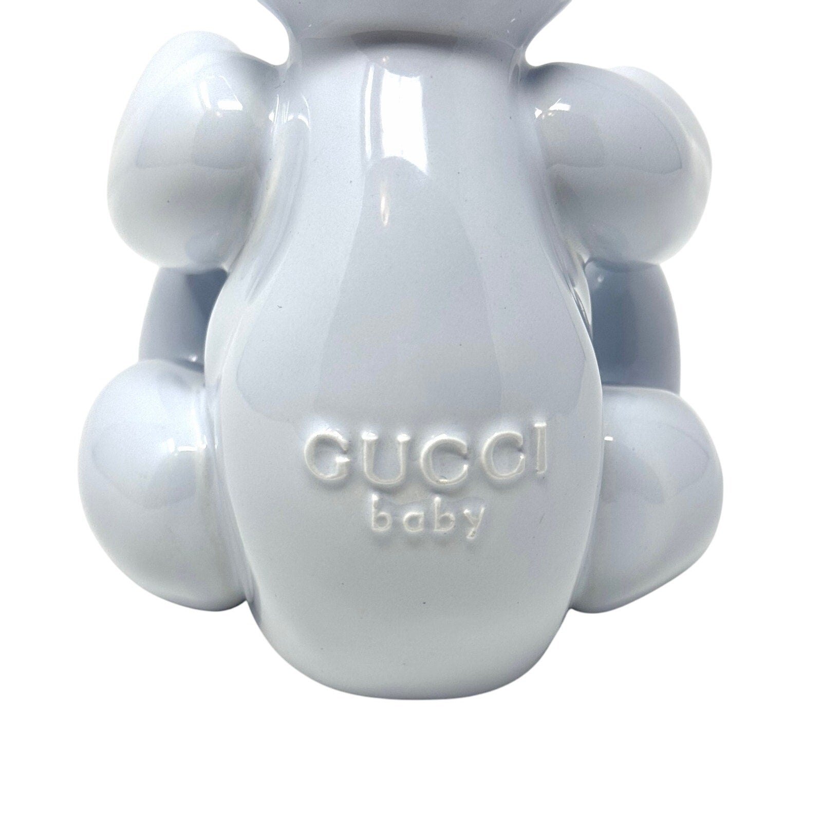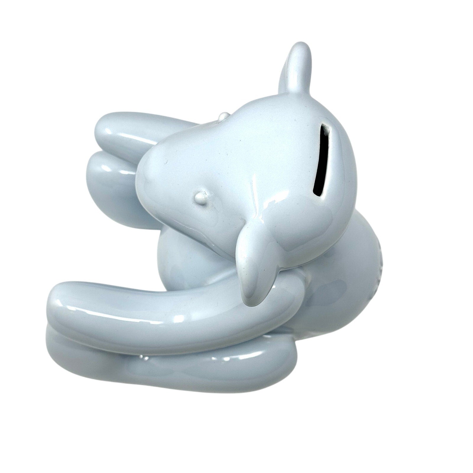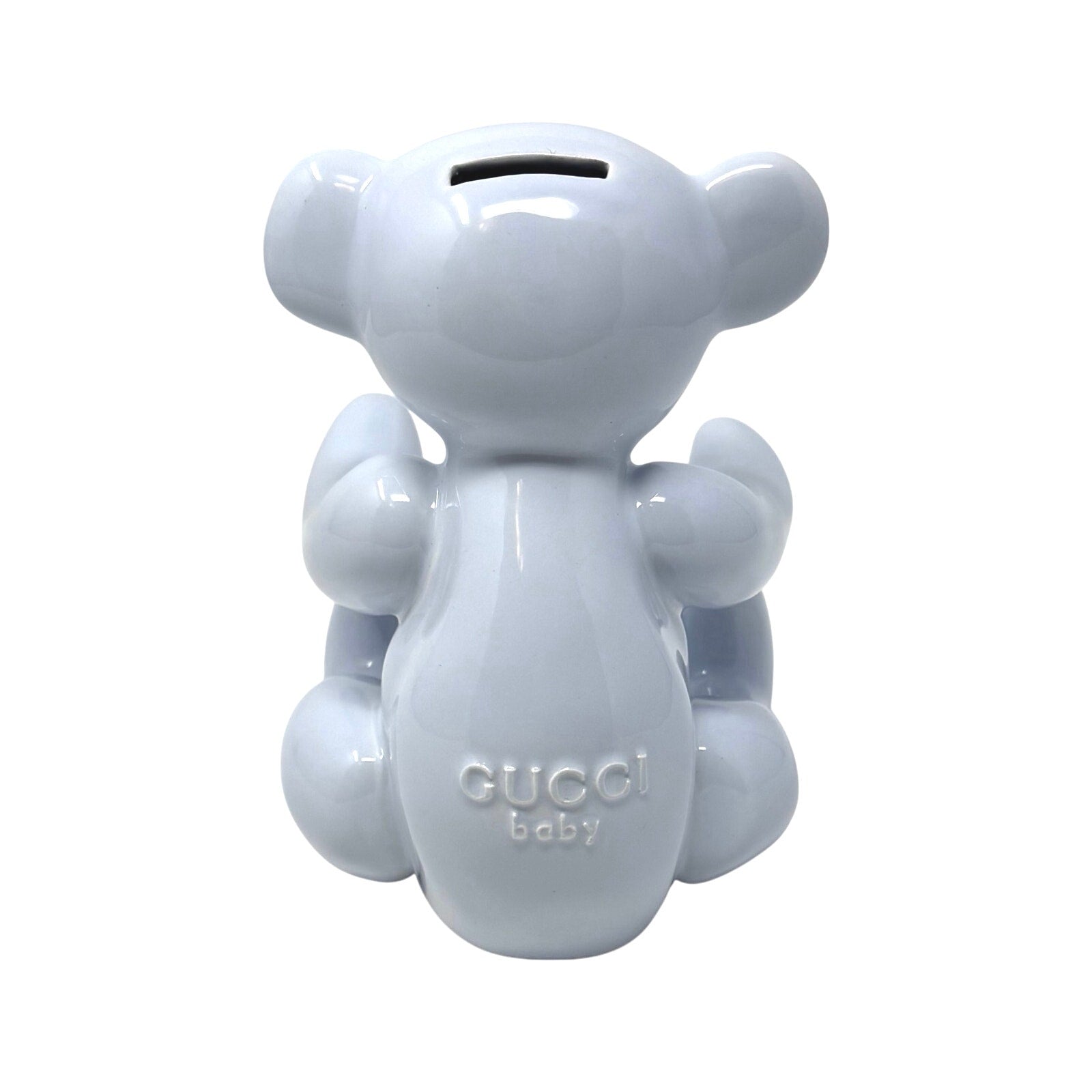 Beautiful Teddy Bear Style Piggy Bank made of Sky Blue Ceramic construction.