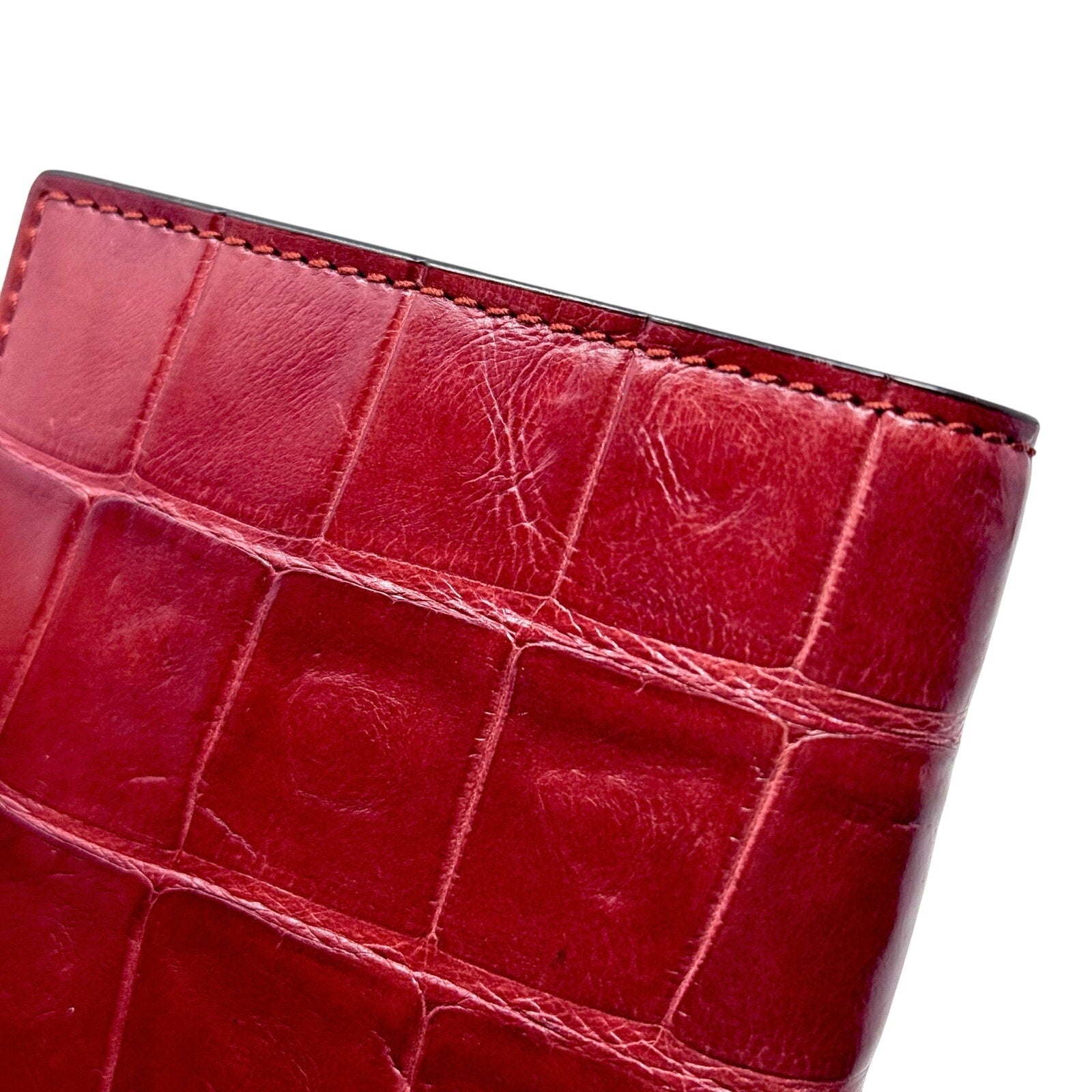Gorgeous Passport Holder / Case made from genuine crocodile leather and finished in a Vibrant All Red color. Has room for cards, IDs, and Cash.