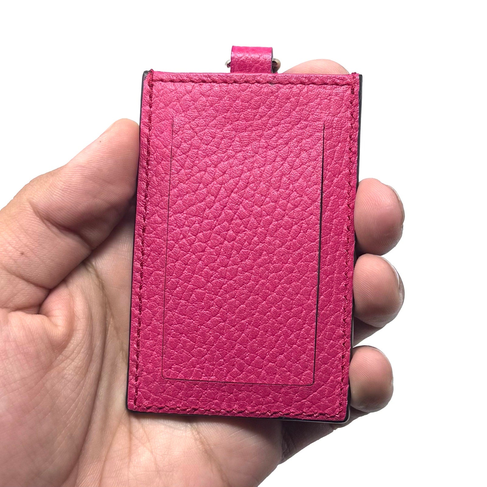 Beautiful Pink Luggage Tag with metal logo across the front.