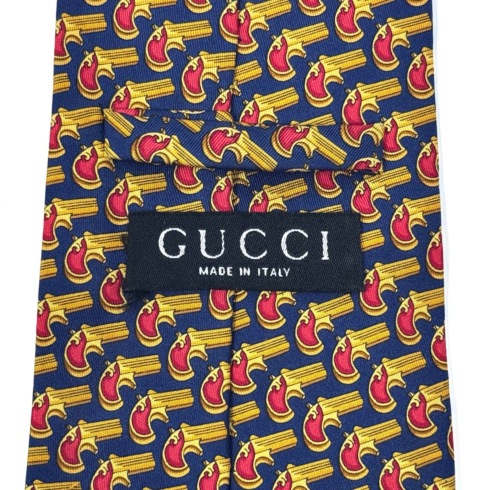 Vibrant Navy/Red/Yellow 100% Italian Silk Necktie with Pistol Pattern through out! VERY RARE DESIGN!