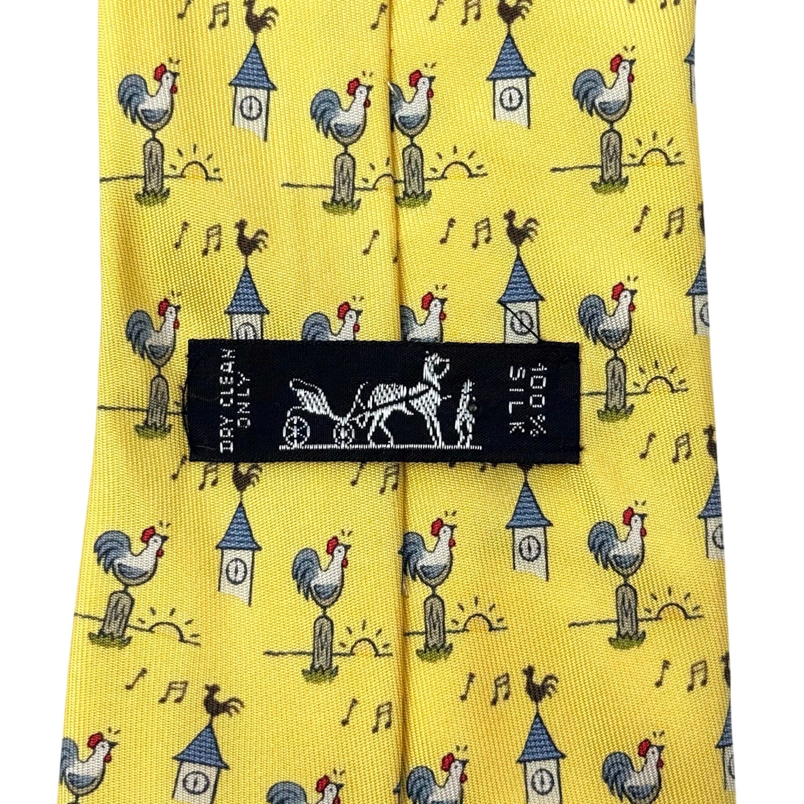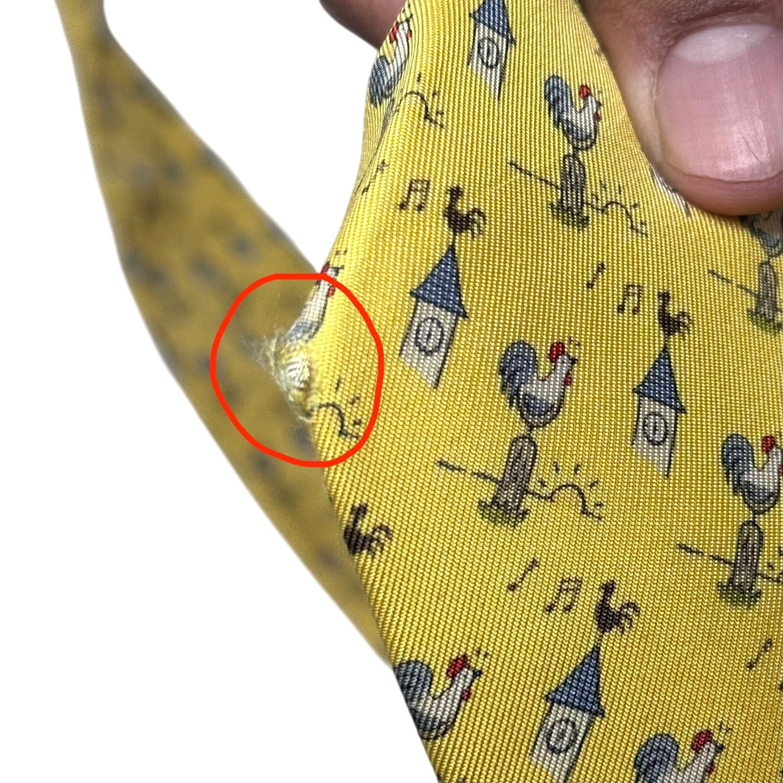 Beautiful Yellow 100% Italian Silk Necktie with Rare Rooster Pattern through out!