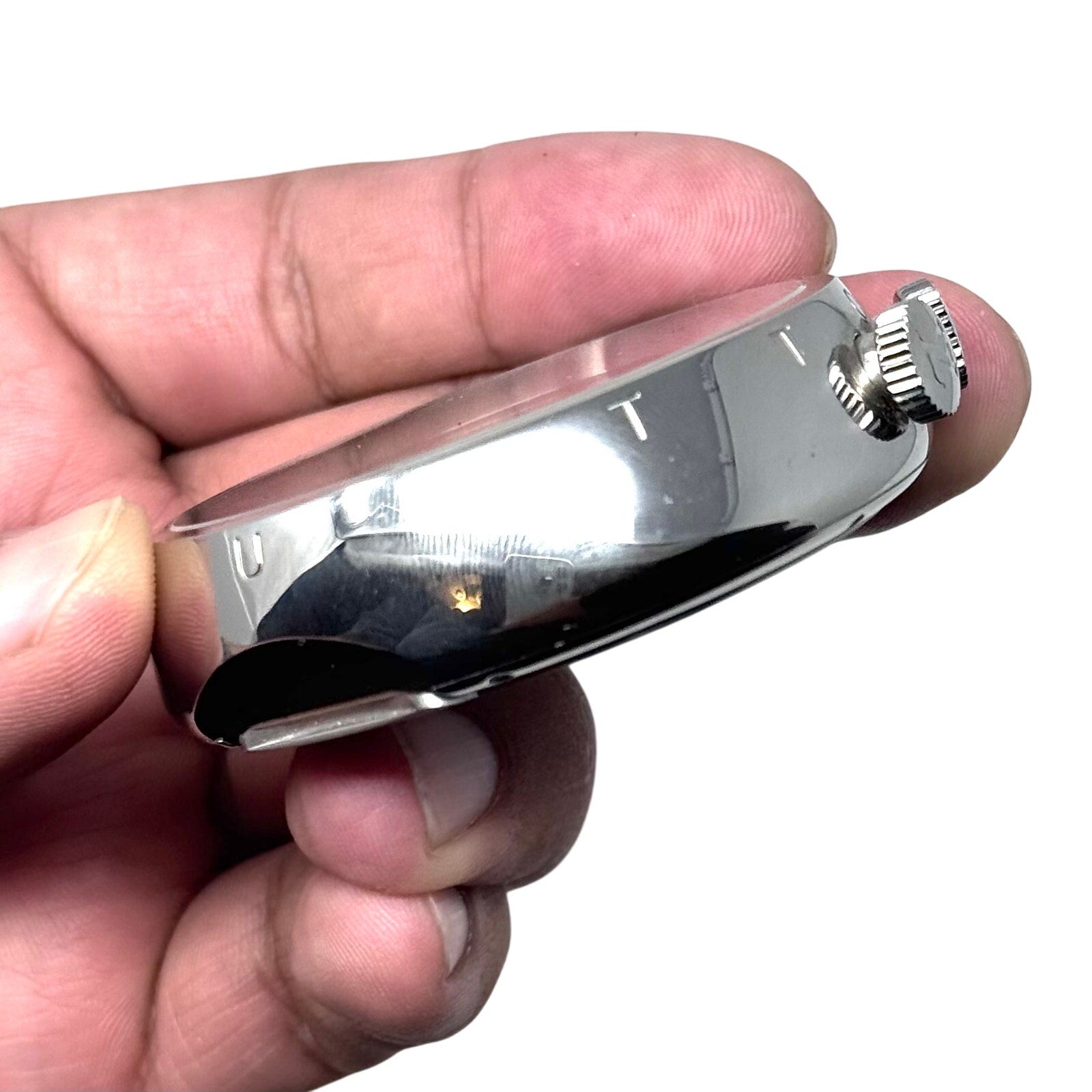 Beautiful Table Clock with gorgeous Navy Blue Watch Face and engraved Monogram pattern on the back.