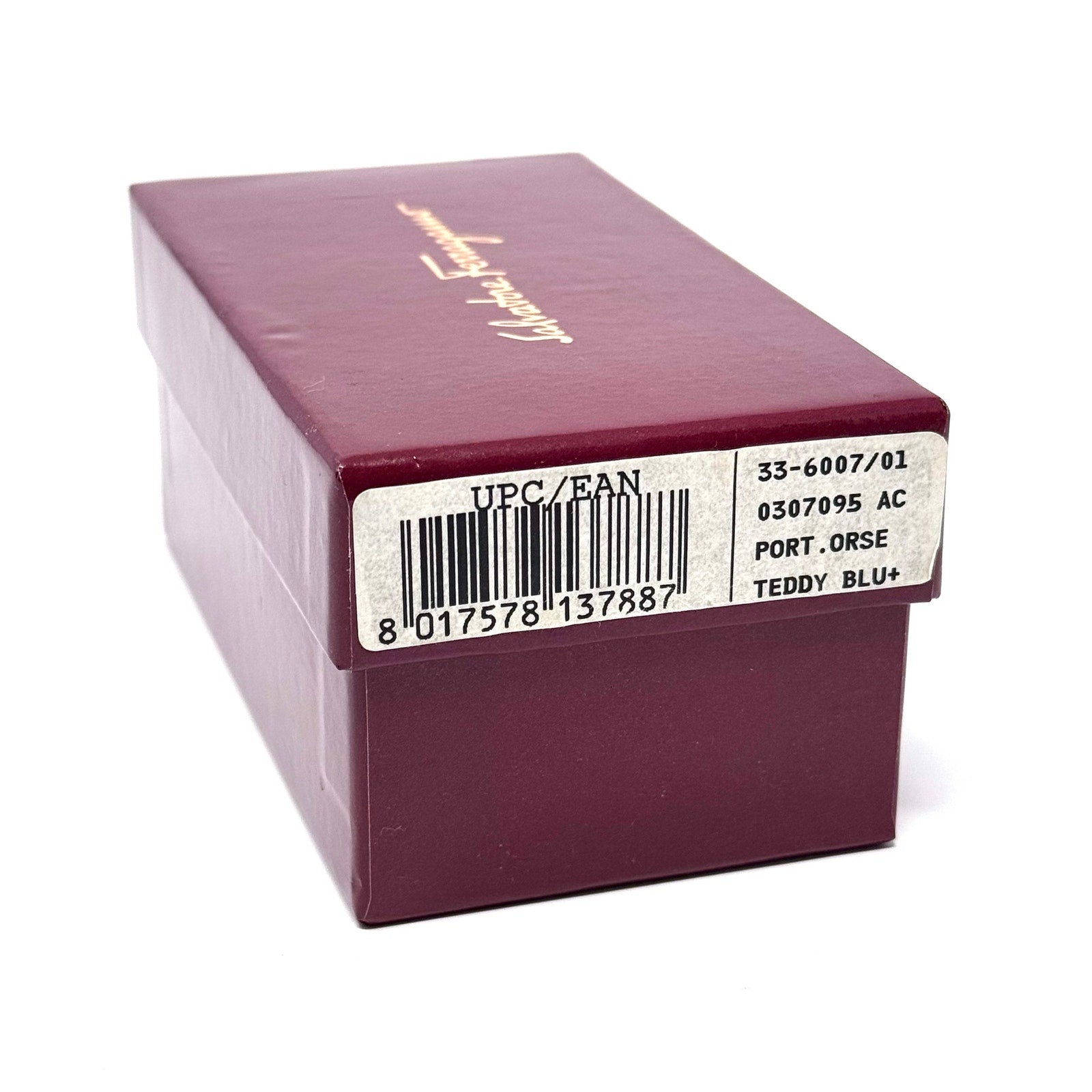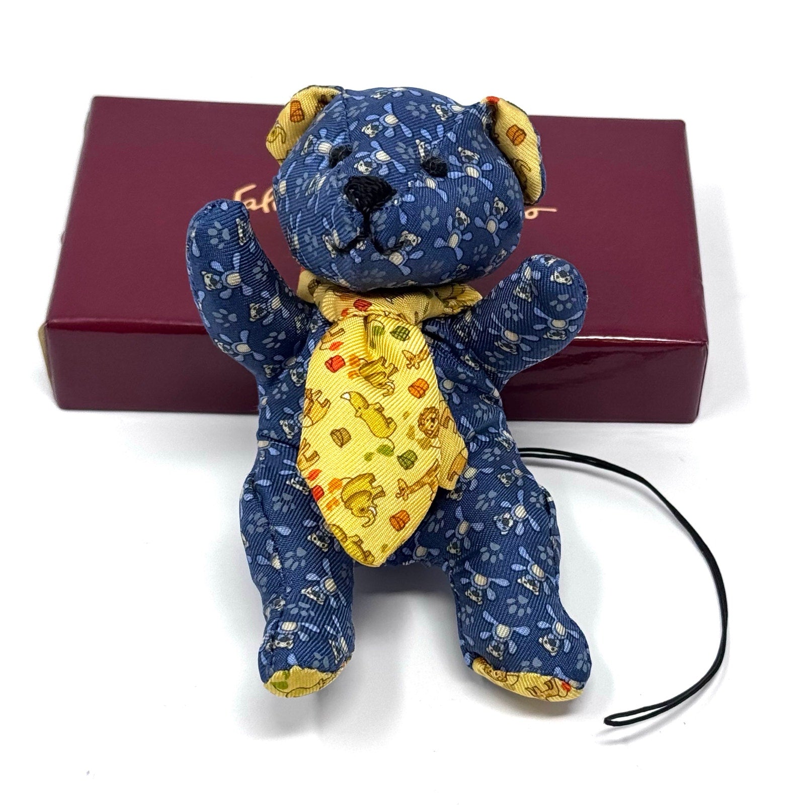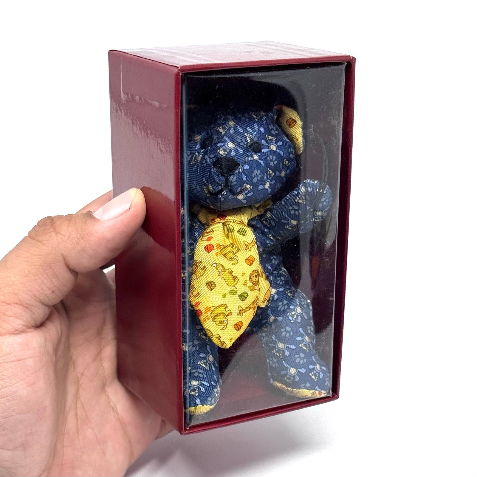 Beautiful Mini blue Teddy bear stuffed animal with animal pattern throughout and a keychain/phone strap attached to the back.