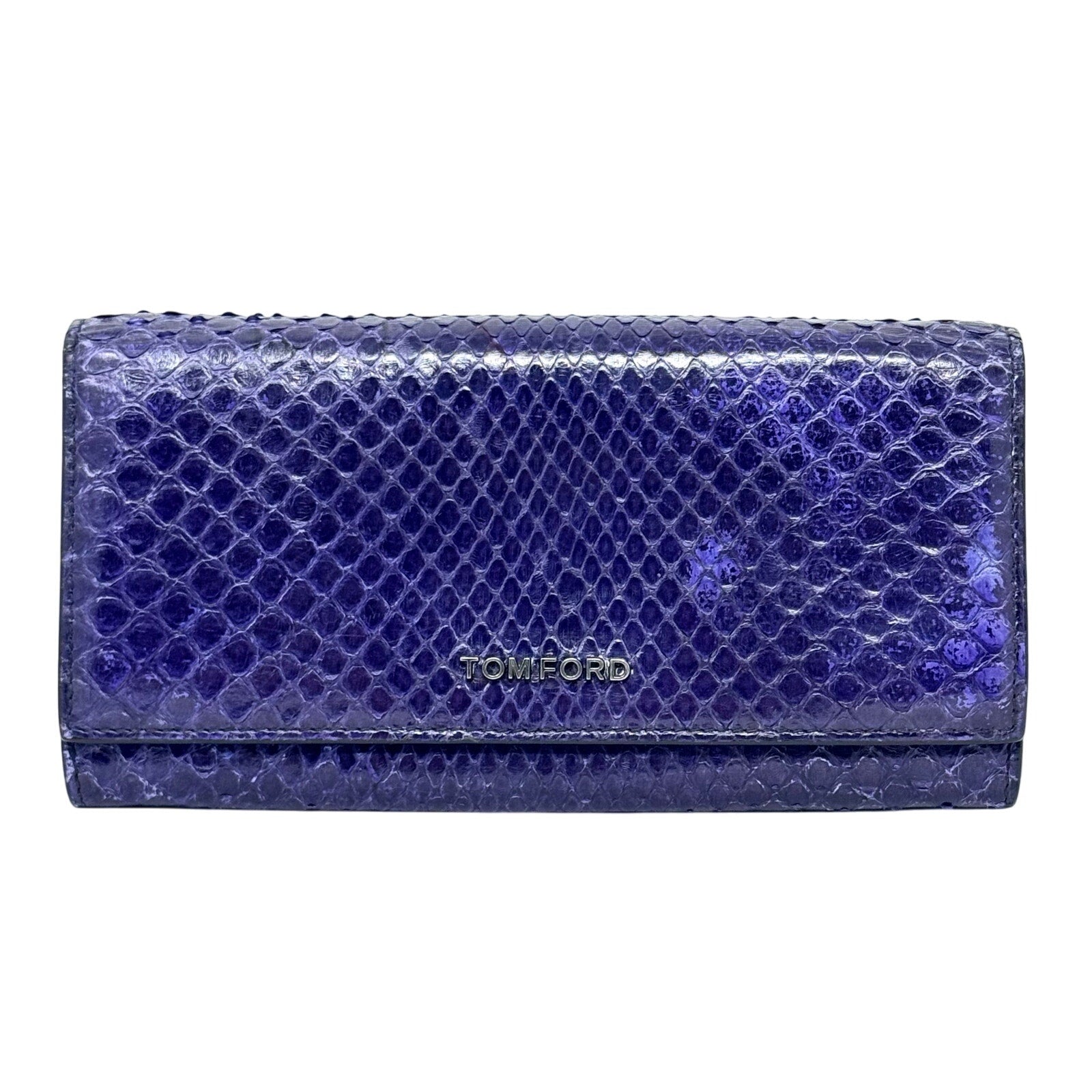 Gorgeous Python Leather TF Long Wallet with metal logo across the front & finished in a beautiful purple color.