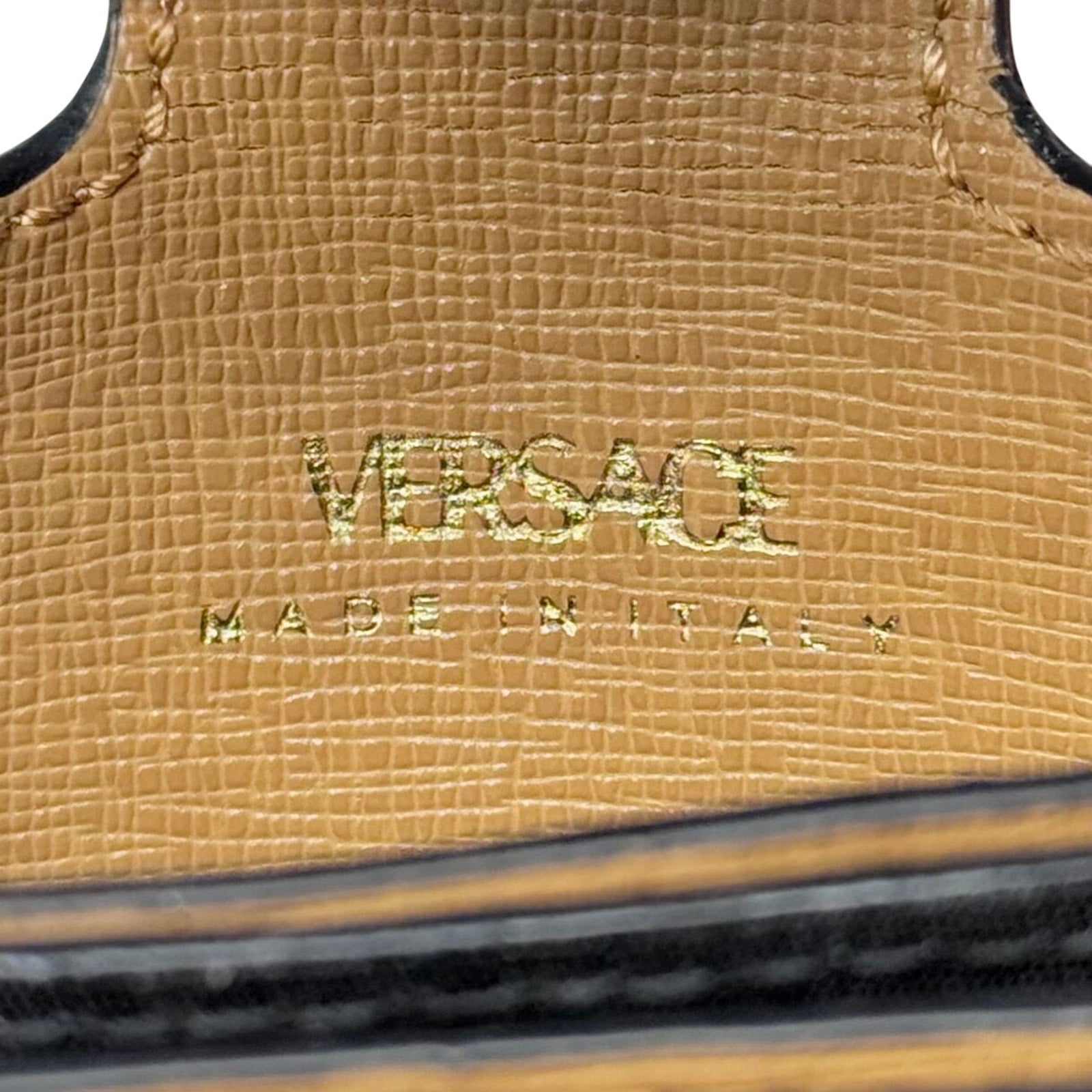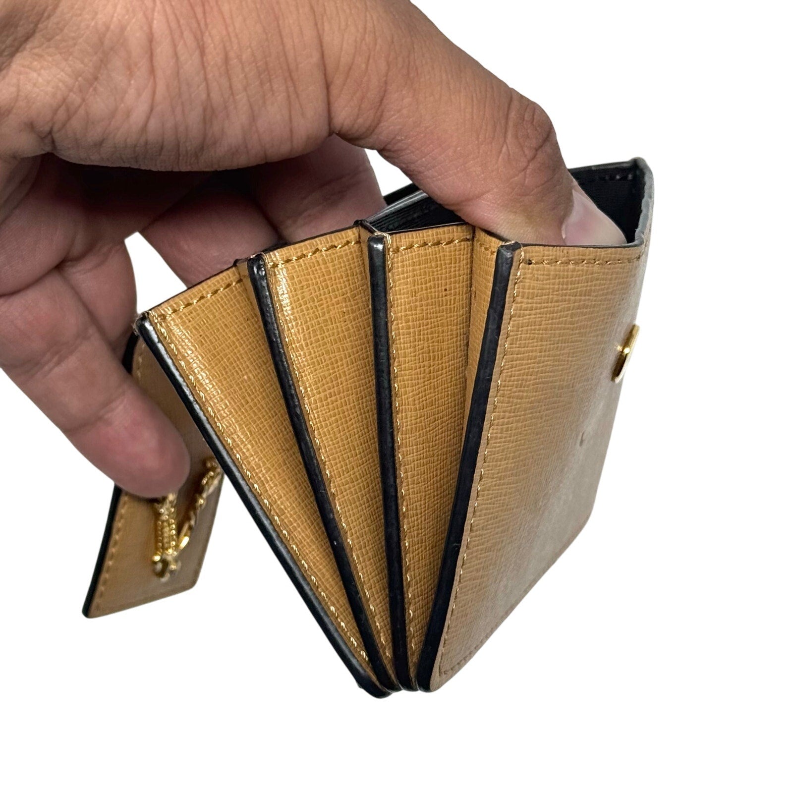 Beige Leather Bifold Wallet with Metal V Logo on the front in gold-tone Metal.