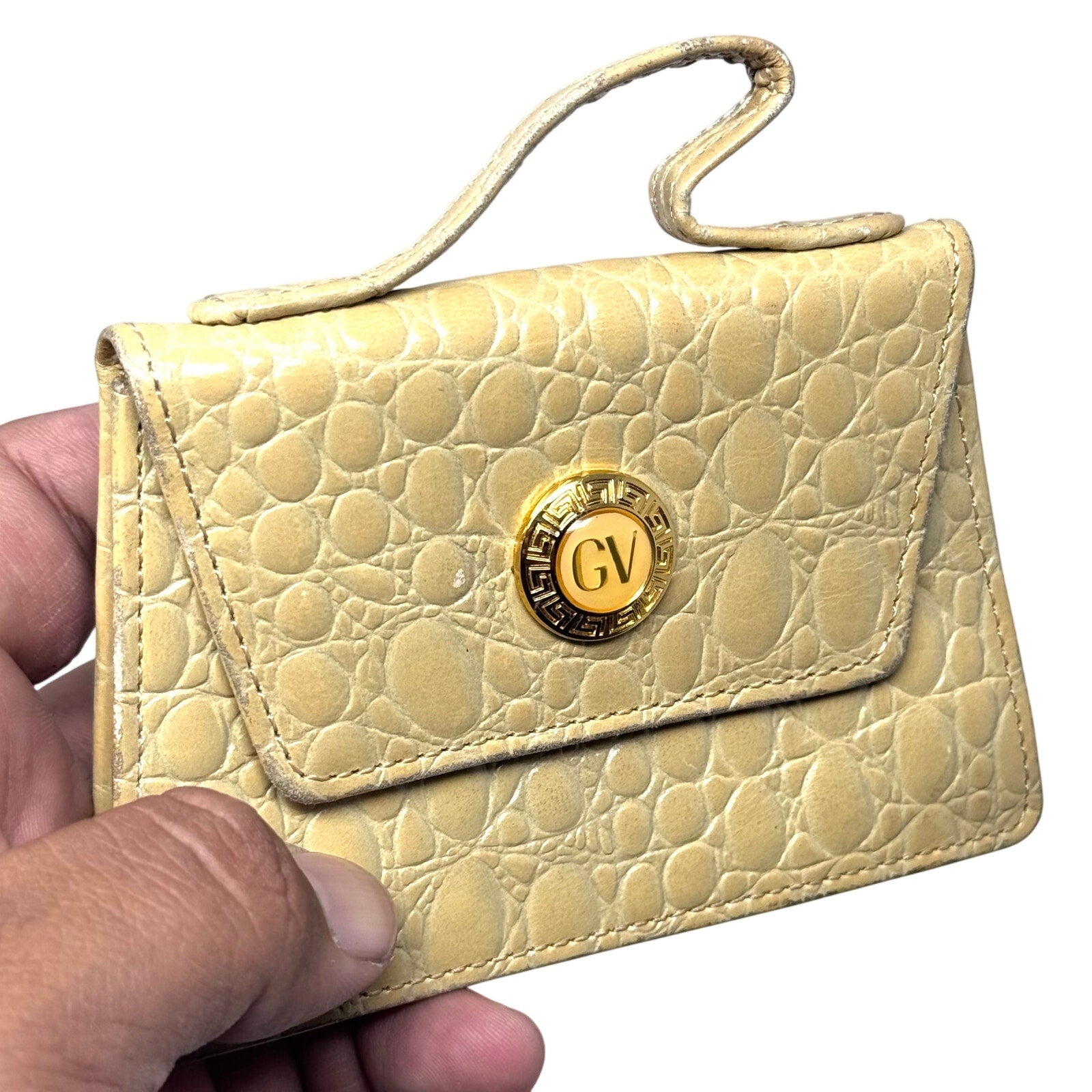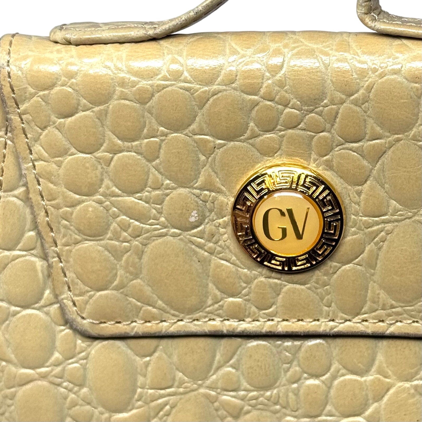 Beautiful Vintage Mini Handbag made of patent leather embossed with croc-inspired pattern.