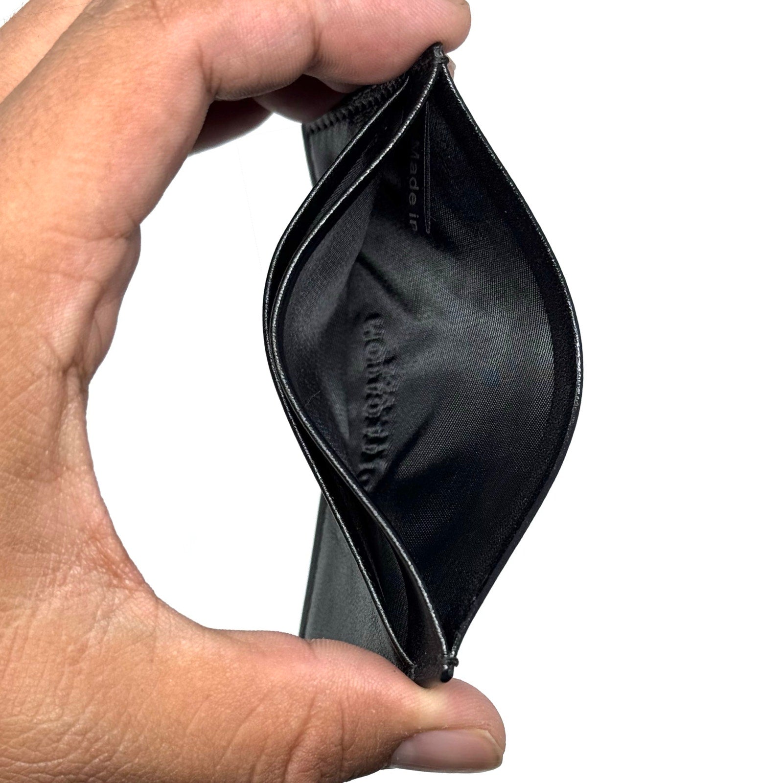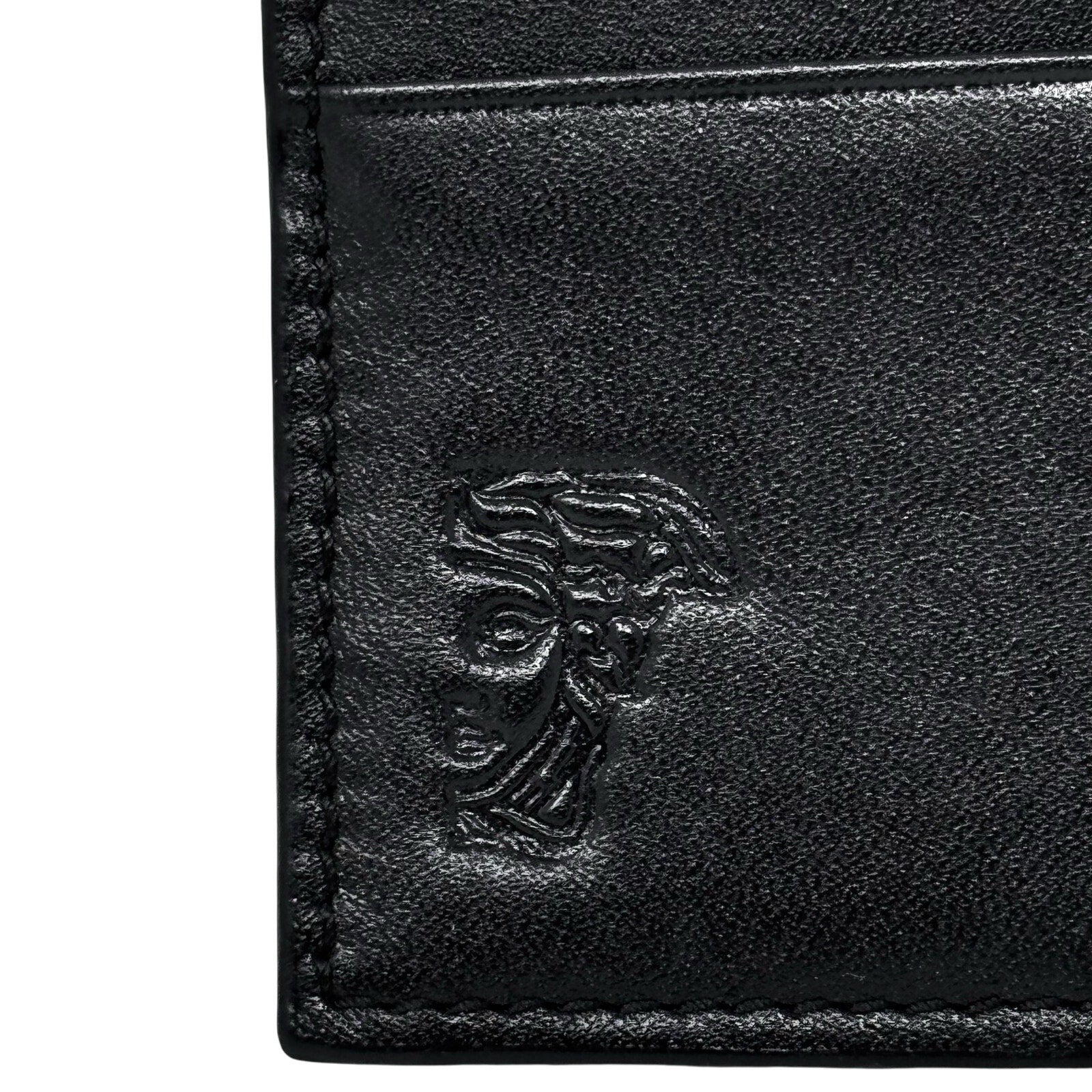 All Black Color and finished Leather with embossed Medusa Logo on the front.