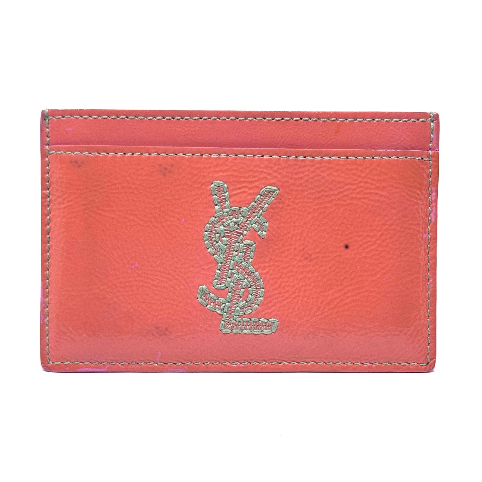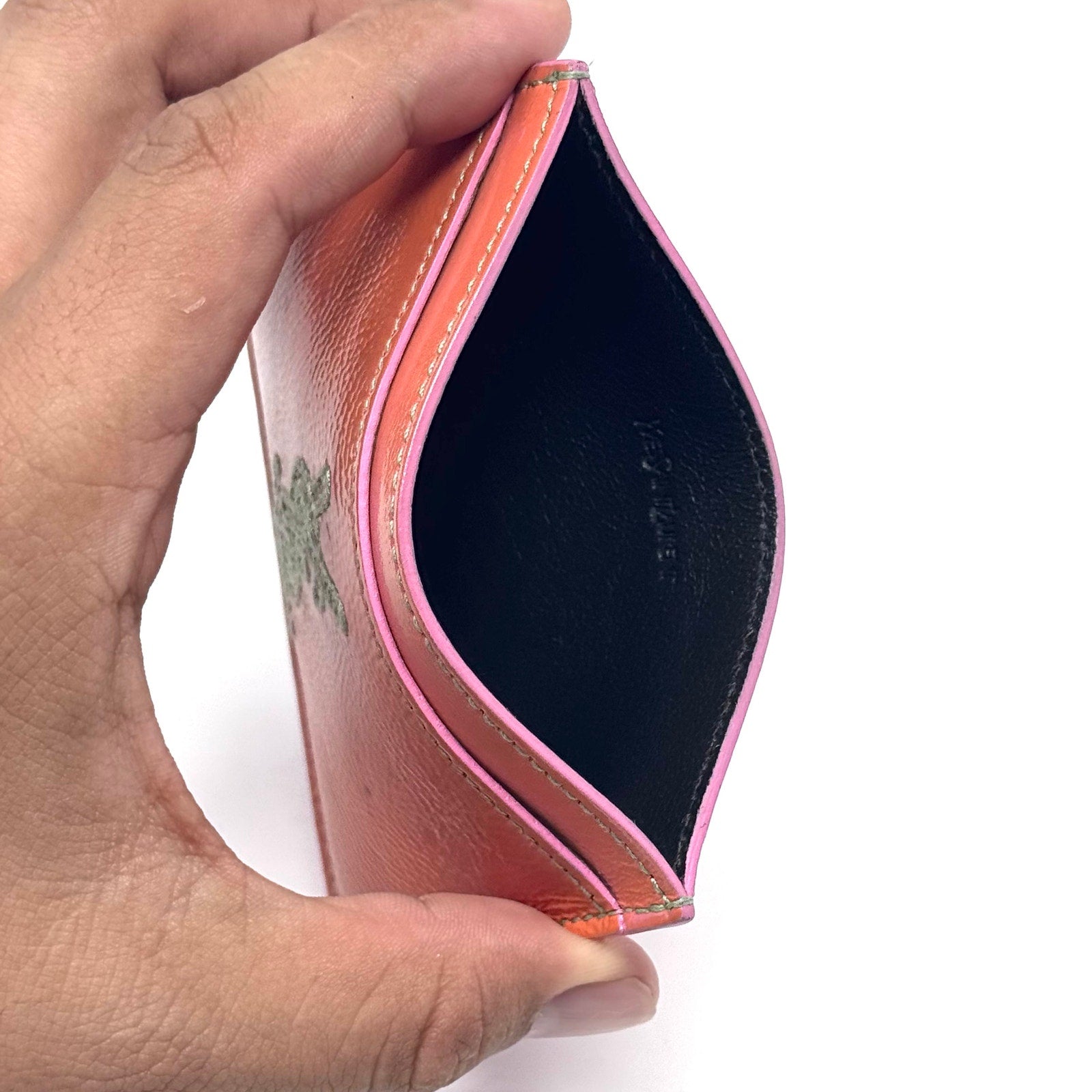 Beautiful patent leather Cardholder Wallet finished in beautiful orange color and Classic logo embroidered on the front.
